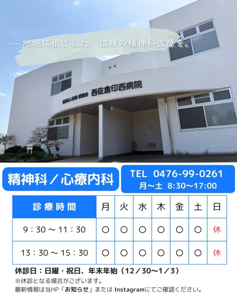当院では、外来・慢性期の精神科医療を提供しています。多職種が連携しながら、一人ひとりの患者さまに向き合う医療を大切にしています。
